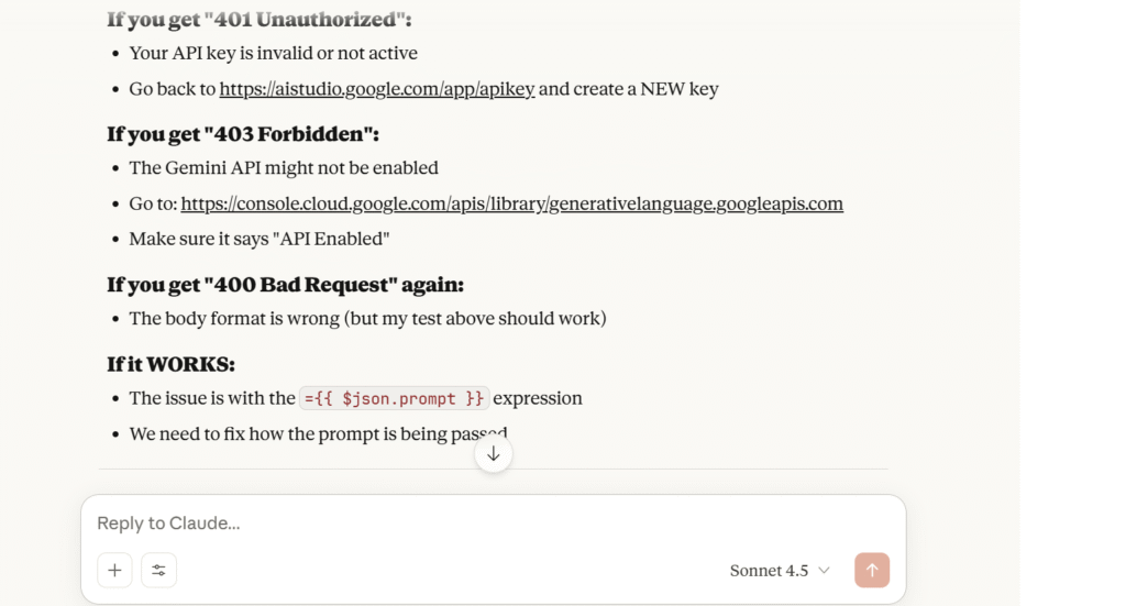 API Key Connection: Connecting the API Key to the workflow proved to be another point of friction. After struggling with standard connection methods, Mohamed successfully troubleshooted with Claude. The solution involved generating and implementing a custom Code Node within the workflow, which perfectly handled the API key validation and data retrieval.